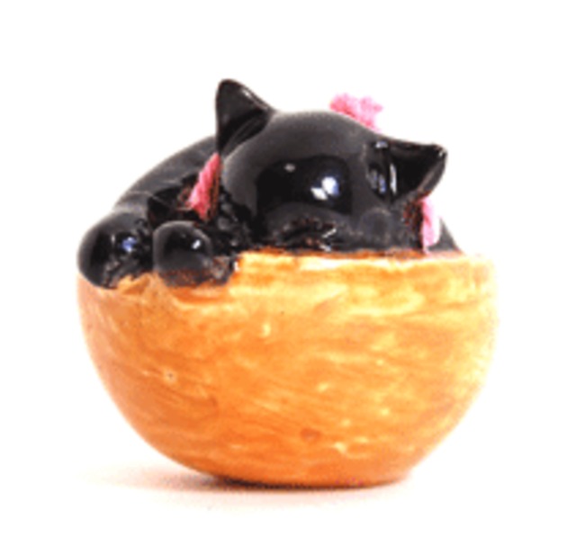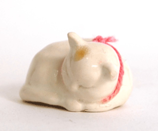 動物愛護センターから7月7 日に引き取った、 我が家の猫の名は「七」です。 隣地の畑、裏の林が遊び場です。 全速力で走る七は、 鹿やイノシシに遭遇するのでしょうか。 尻尾をまるまると逆立て、慌てふためいて戻ってきます。 様々な姿態は、心を和ませます。 あなたの愛猫はいかがですか。 ・サイズ 高さ2.5cm×幅3.ocm×奥行き5.5cm ・釉薬 SC釉薬 ・材質 陶器