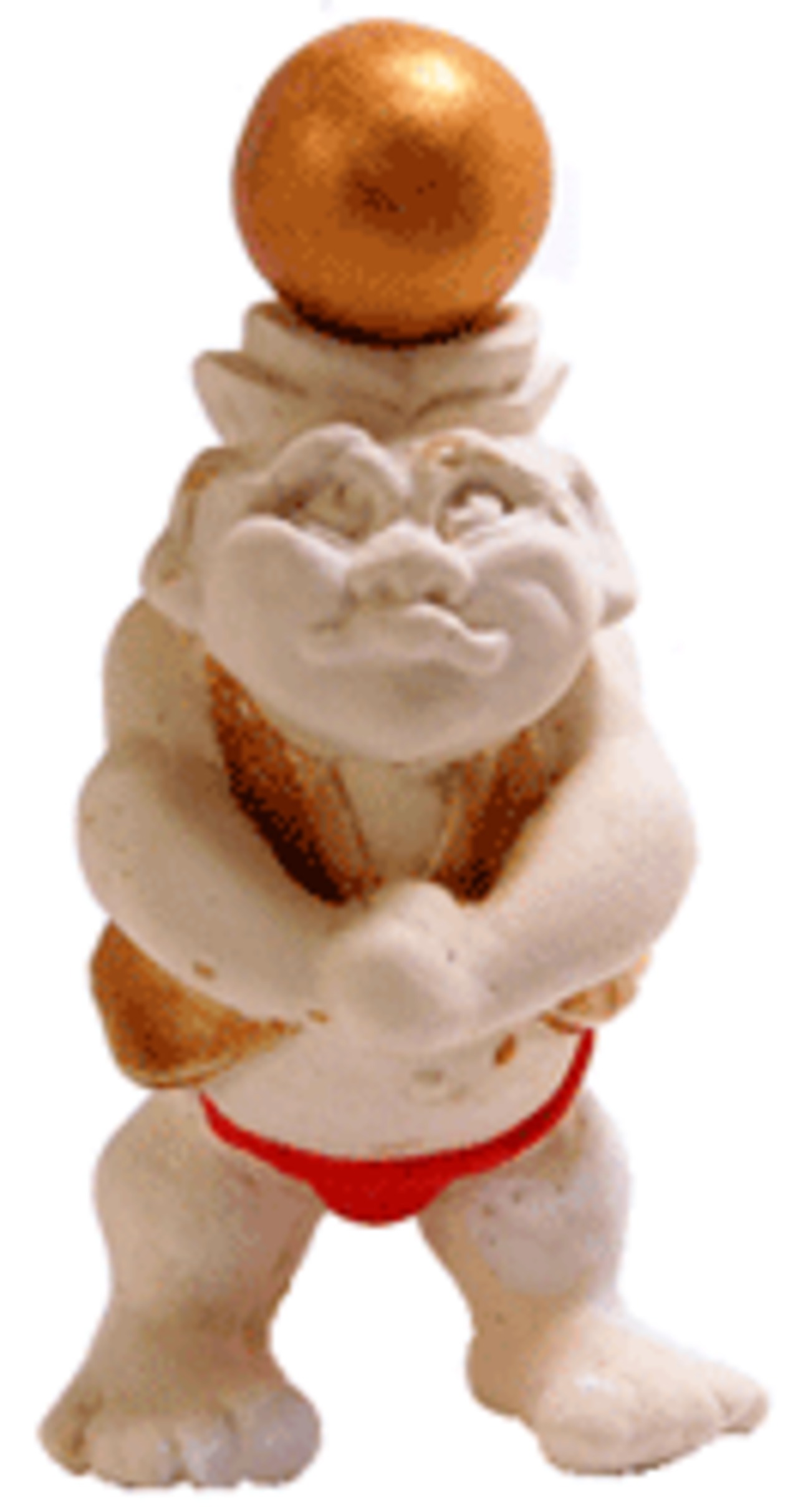 実物は大蛇を身体に巻き、頭に灯籠を乗せています。